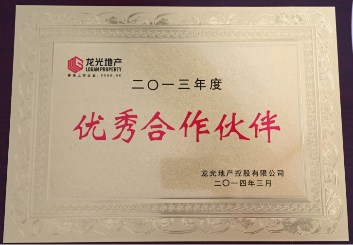 龍光地產控股有限公司2013年度優(yōu)秀合作伙伴 |