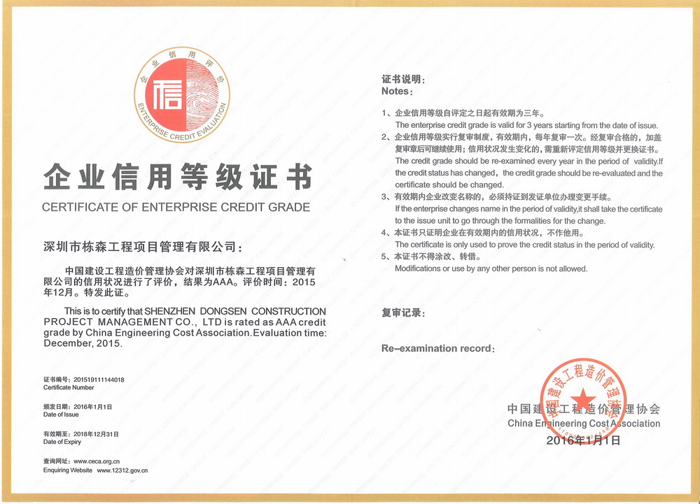 中國建設工程造價管理協(xié)會企業(yè)信用等級AAA |