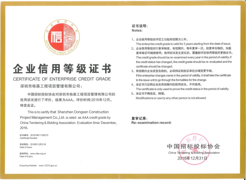 中國招標投標協(xié)會企業(yè)信用等級AAA |