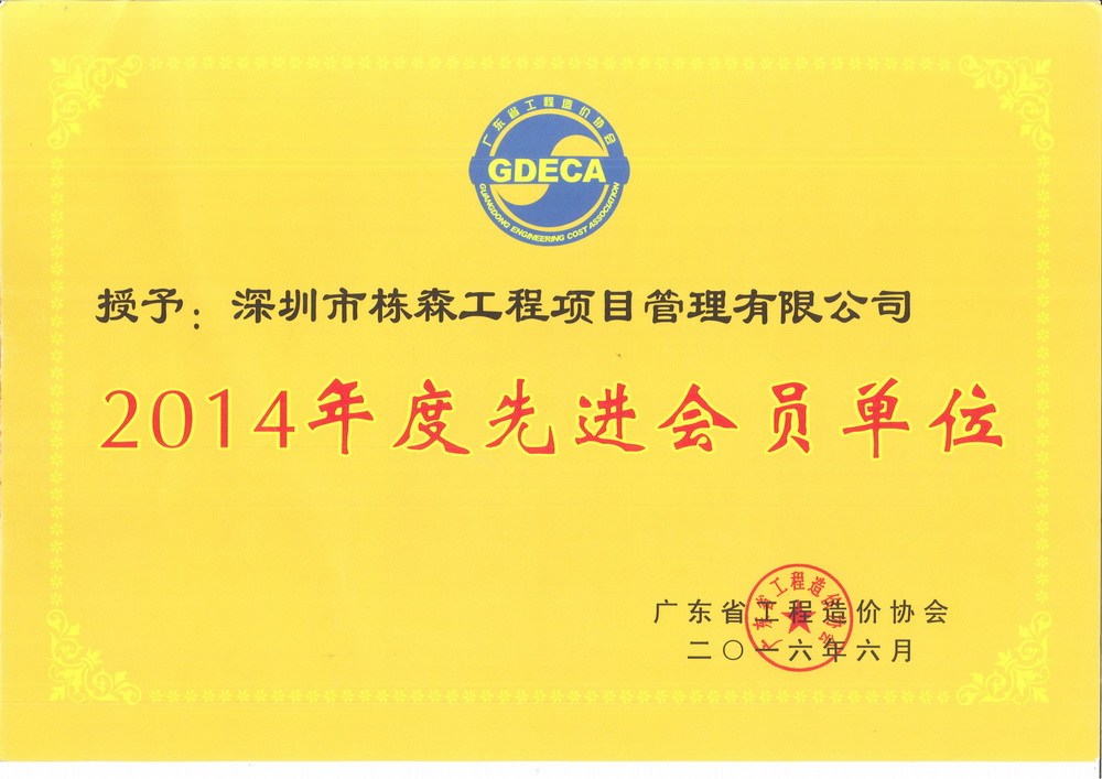 廣東省工程造價協(xié)會2014年度先進會員單位 |